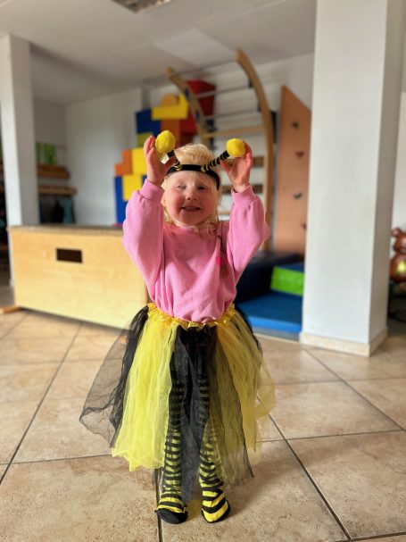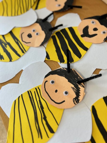 Gleichzeitig ist die Projektwoche vielfältig und bunt. Das Bienenthema begleitet uns durch den gesamten Alltag: Wir sprechen über die Bienen, greifen Fragen der Kinder auf, malen, basteln, gestalten, spielen und setzen uns auf unterschiedliche Weise mit dem Thema auseinander. So entsteht Lernen ganz nebenbei – durch Erleben, Ausprobieren und gemeinsames Tun.